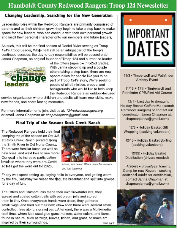 Hello 124 Redwood Rangers, Rovers and scouting parents,
